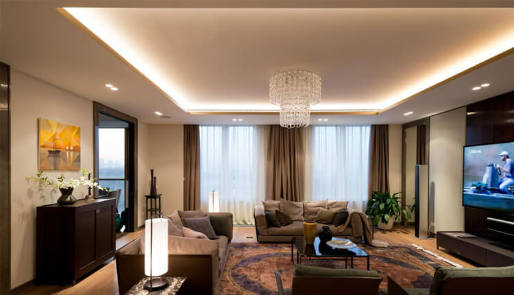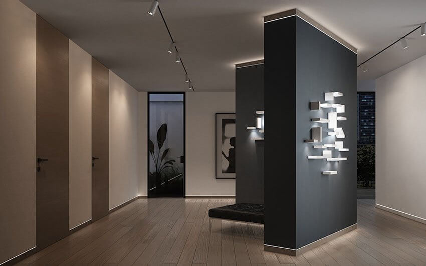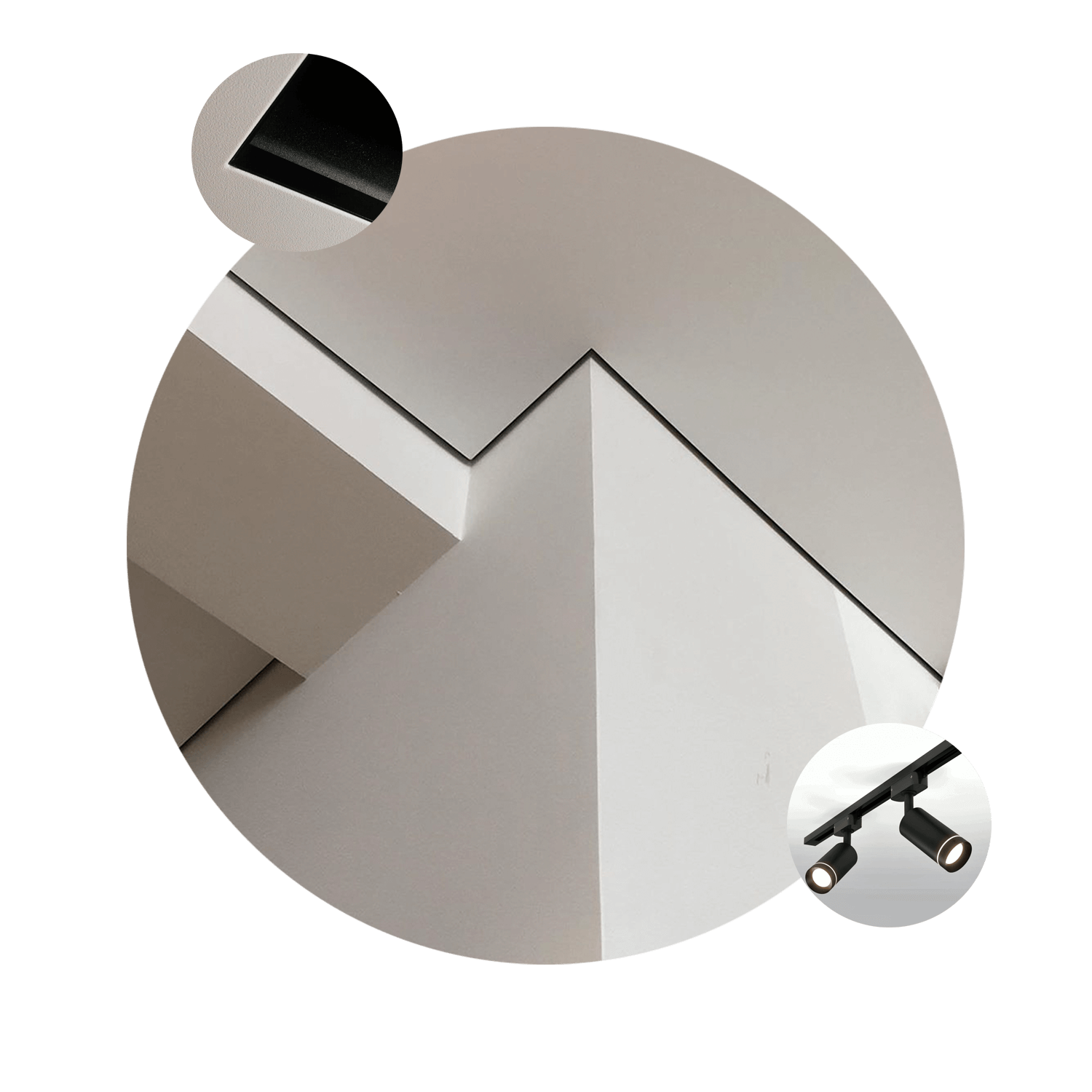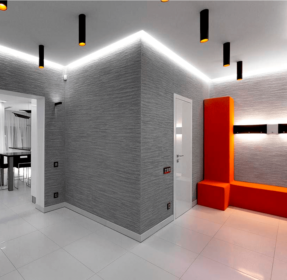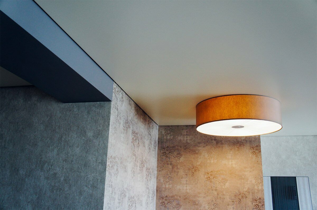 Самый актуальный тренд в натяжных потолках. Монтаж полотен осуществляется в специальный жесткий алюминиевый профиль демпферным способом, благодаря чему по периметру потолка образуется теневой зазор, подчеркивающий геометрию пространства и не нуждающийся в сокрытии плинтусом. Дизайнеры интерьера часто используют теневые потолки в сочетании с парящими стенами и деревянными рейками.