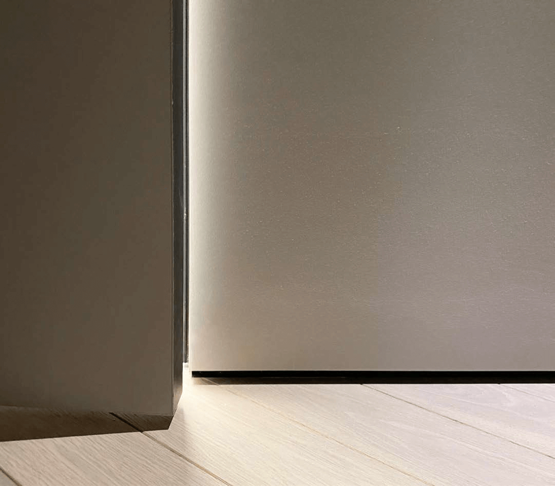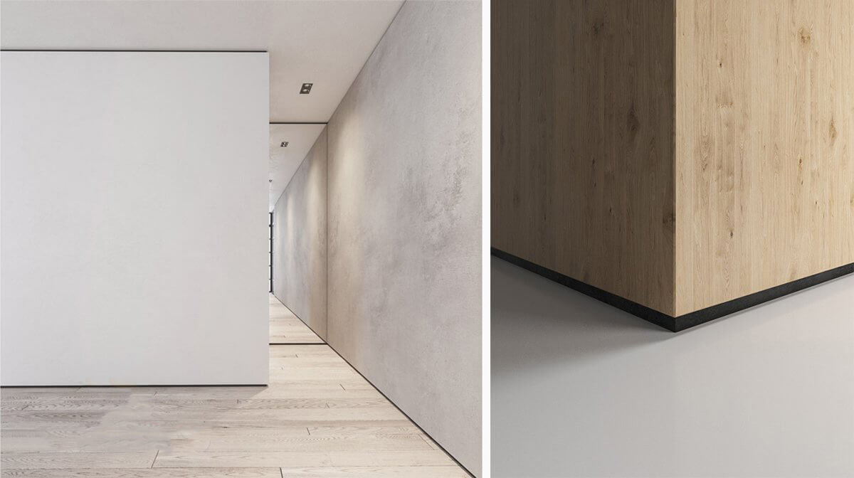 Стандартные оттенки утопленного плинтуса могут быть с различными видами поверхности: глянцевый, матовый, полуматовый, муар (шероховатый) и шагрень (грубо-шероховатый).